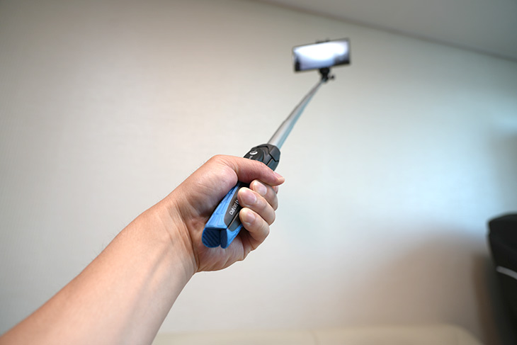 셀카봉으로 쓰고 있는 모습인데요. 요즘은 셀카봉 삼각대 좀 흔하긴 하죠. 이제는 품질이 좋고 기능도 많아야 선택을 받는데요. 이 제품은 어떨까요?