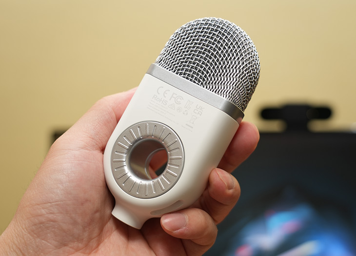 마이크는 생각보다 좀 가벼운 느낌이 많이 듭니다. 상단에 금속메쉬덮개가 있는데 꽤 디테일이 멋집니다. 가격이 저렴한 편이지만 퀄리티가 생각보다 괜찮았습니다.