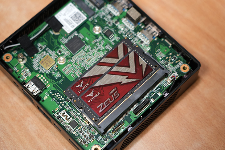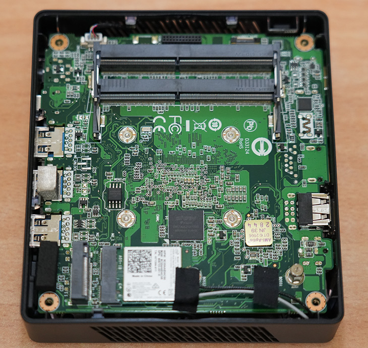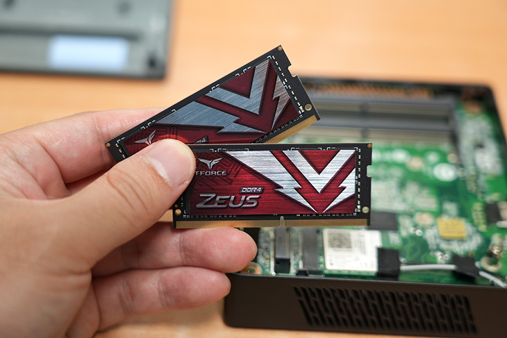 분해해보면 램을 장착하는 부분이 보입니다. 규격은 2 x SO-DIMM DDR4 2933 MHz, dual channel up to 16GB 라고 되어있는데요.