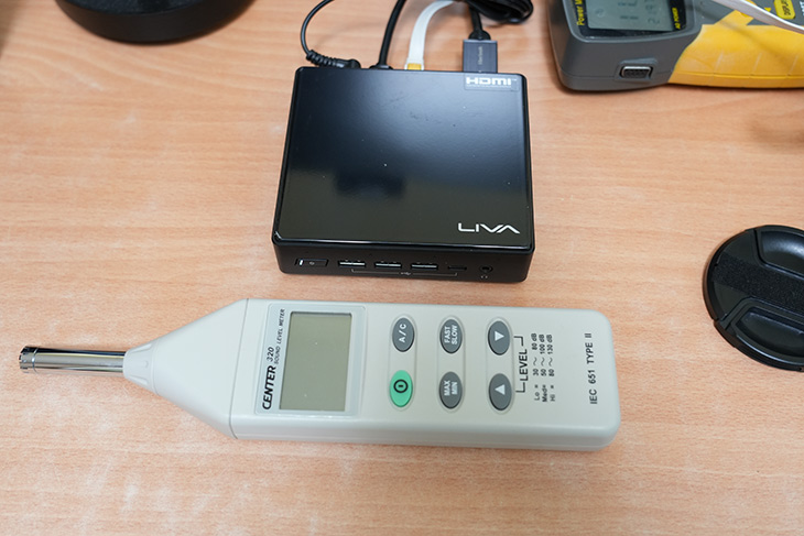 소음 테스트는 하진 않았습니다. 팬이 없어서 소음은 전혀 나지 않습니다. 전원 어댑터에서도 소음은 없었습니다.