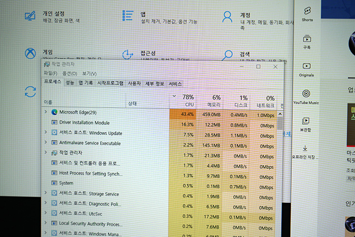 정말 몇시간을 켜놓아도 CPU 점유율이 떨어질줄을 모릅니다. 그 후 몇번 업데이트와 재부팅을 해주면 천천히 CPU 점유율이 떨어집니다.