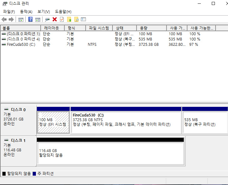 저장장치는 테스트를 위해서 FIRECUDA 530 4TB를 장착을 해 봤습니다.