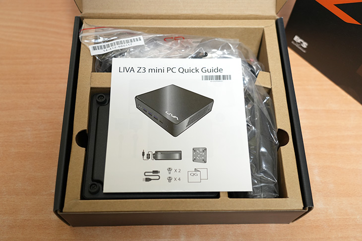 먼저 제품 박스 입니다. LIVA Z 시리즈 이고 ZE, Z 이렇게 두가지 타입이 있습니다. Z는 메모리가 빠진 모델로 메모리를 직접 장착해야 합니다. 참고로 OS도 빠져 있습니다.