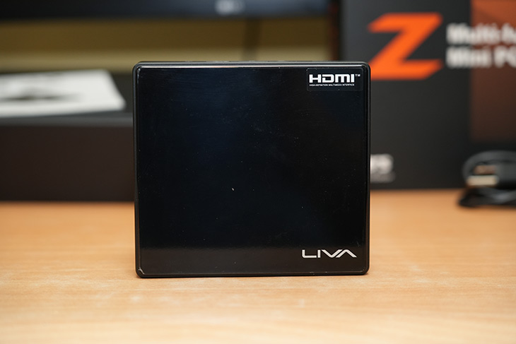 미니PC는 대부분 비슷하게 정사각형 모양인데 이 제품도 그렇습니다. 상단은 하이그로시가 적용되어있는데 LIVA 로고가 있습니다.