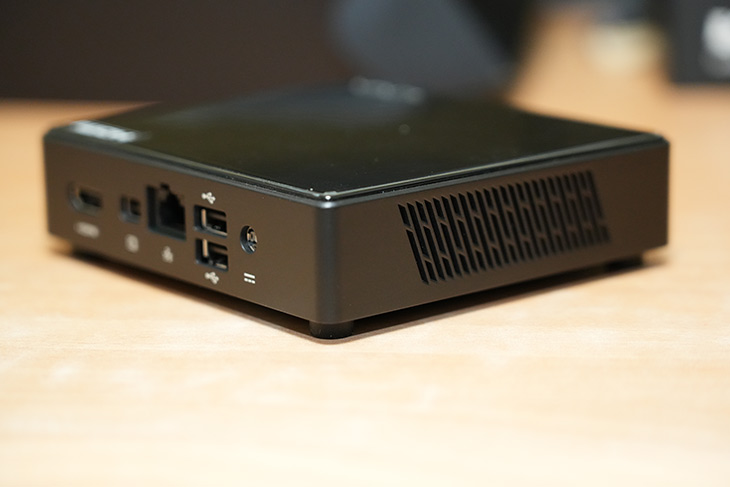 측면에는 통풍구가 있는데 이 모델은 기본적으로 저전력 CPU를 사용하기 때문에 팬이 없습니다. 하지만 열을 방출해야하므로 측면에 통풍구가 있습니다.