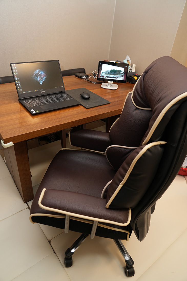 원래 이 자리에서 쓰는것은 아니지만, 사진찍으려고 위치를 옮겨서 찍어봤습니다. 노트북이나 컴퓨터 할 때도 무척 의자가 좋았습니다. 일단 앉았을 때 느낌이 너무 좋네요. 근데 여름에는 좀 더운 느낌도 있긴 합니다. 아무래도 여름에는 통풍이 되는 의자를 쓰고 있는데요. 그래서 그럴지도 모르겠네요.