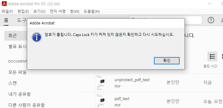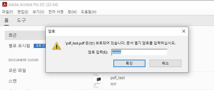 PDF 문서를 열기를 하고 암호를 입력을 합니다.