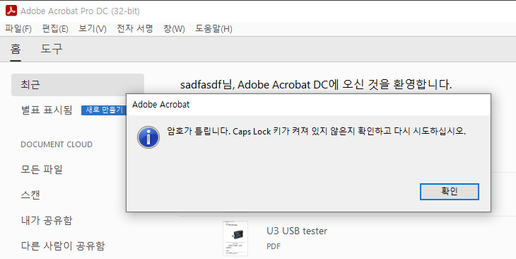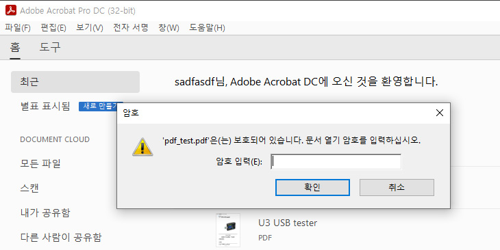 PDF 문서의 암호를 입력 합니다. 좀 전에 알게된 암호를 입력 합니다.