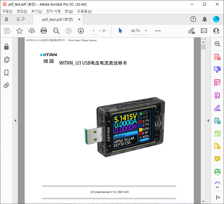 먼저 PDF 문서를 준비를 하나 했습니다. 암호를 설정을 해뒀습니다. Adobe PDF 프로그램에서는 암호를 지정시 최소 6자리로 지정을 해야 합니다. 그래서 제가 임의로 6자리 암호로 설정을 했습니다.
