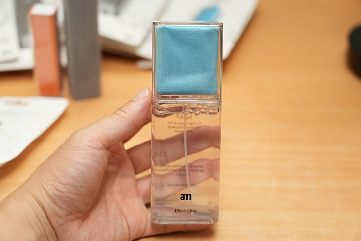 AM 자이언트는 175ml 대용량의 세척액이 들어가 있고, 다양한 화면을 넉넉하게 닦을 수 있습니다. 부피가 약간 크므로 휴대성은 좀 떨어지지만 다양한 화면을 편하게 닦을 수 있습니다.