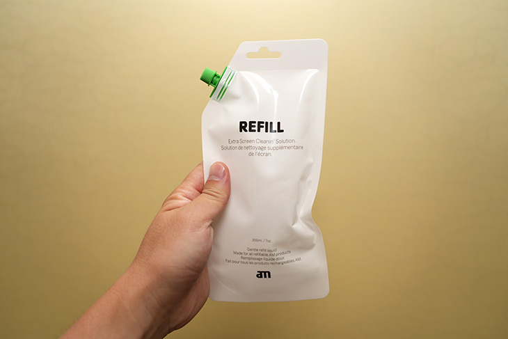 AM 클리너는 리필이 가능한데, 한번 쓰고 버리는게 아니라 저렴하게 세척액을 구매해서 리필할 수 있죠.