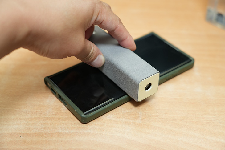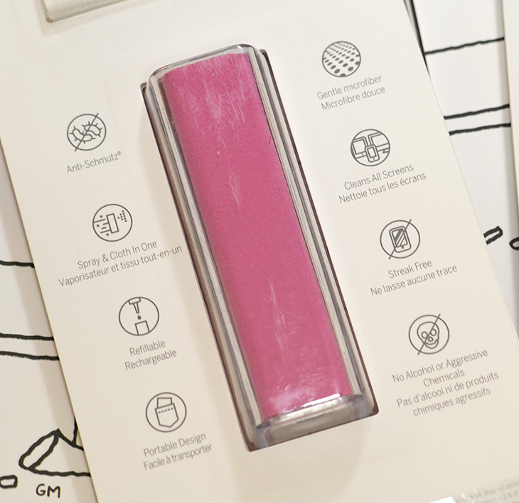 부드러운 초극세사가 몸체에 붙어있어서 화면에 스크레치 없이 닦아낼 수 있습니다. 따로 천을 들고다니지 않아도 되어서 편합니다