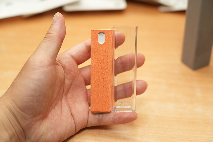 AM 스프레이는 약간 더 큰 사이즈를 가지고 있고 태블릿이나 컴퓨터 모니터 등 좀 더 큰 사이즈의 화면을 닦을 때 좋습니다. 물론 스마트폰 화면도 닦을 수 있습니다.