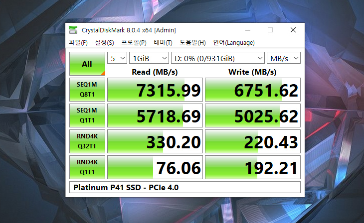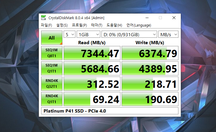 SK하이닉스 Platinum P41 M.2 NVMe 성능 리뷰