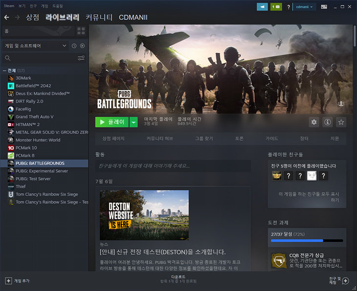 스팀에서 게임도 설치를 해 봤는데요. 1TB가 물론 게임을 많이 설치하기에 넉넉한 용량은 아니지만, 일반적인 유저가 사용하기에는 충분한 용량이긴 합니다.