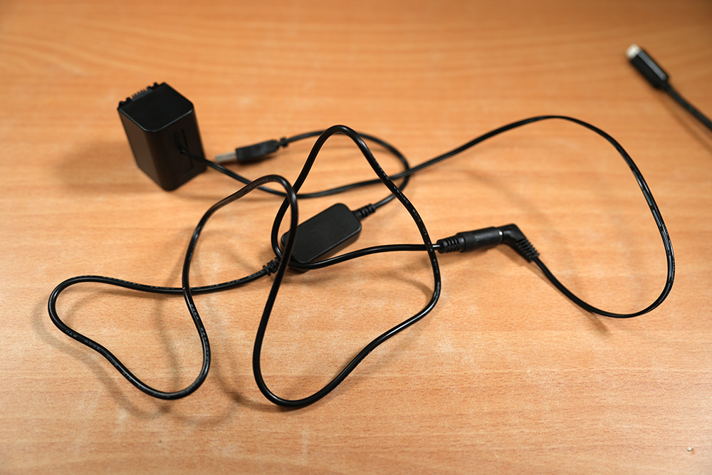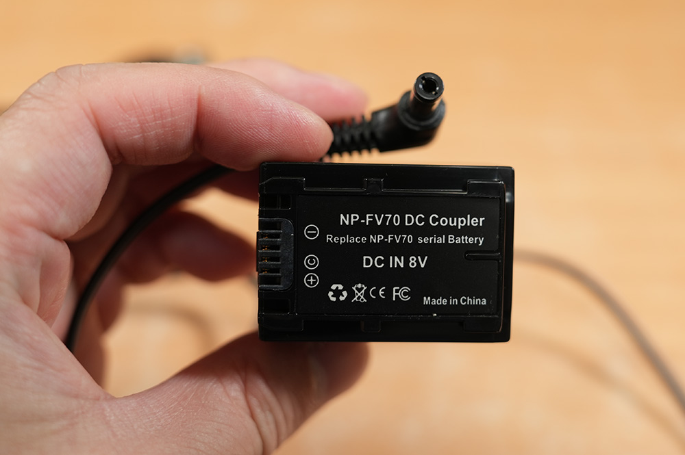 실제로 더미배터리를 이용해서 FDR-AX100을 동작시키고 있는 모습인데요. 원래는 NP-FV100 배터리를 2개를 번갈아가며 사용하고 있었는데요. 그런데 배터리 용량이 크다고 해도 몇시간씩 연속촬영하면 결국 충전을 해줘야합니다. 배터리 교체도 꽤 번거롭죠.