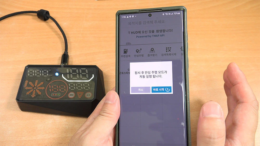 카포스 T-HUD를 실제로 쓰는 모습입니다. 물론 차량 옵션에 있는 HUD가 가장 좋긴 합니다. 그래픽도 좋고 차량 네비와 연동되어서 깔끔하죠. 다만 가격이 좀 비싸서 고민하는 분들에게는 카포스 T-HUD도 괜찮은 대안이 될 수 있습니다.