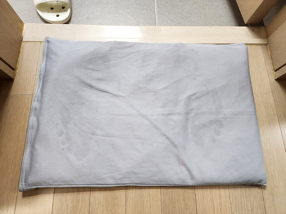 순도가 높은 규조토를 분말 형태로 넣어둔 제품인데요. 규조토를 단단하게 굳혀둔 제품에 비해서 장점이 많았습니다. 위에 천으로 덮어서 쓰는형태인데요. 일반적인 발매트와 비슷하면서도 빠르게 잘 건조되는 형태 입니다. 위에 오염이 되면 따로 천을 세탁해서 쓸 수 있습니다.