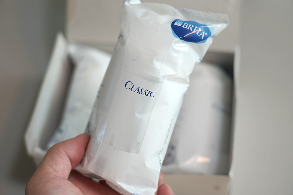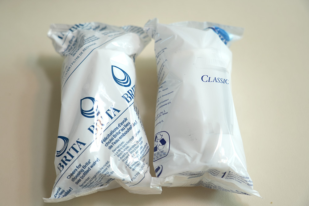 참고로 왼쪽은 2개월 교체주기를 가진 신형필터이고, 오른쪽은 클래식필터로 1개월 교체주기를 가진 제품 입니다. 브리타 정수기 자체도 원래 플라스틱 통이라 영구적으로 쓸수는 없어서 세척하다보면 흠이 생기고 해서 교체를 하긴 해야하는데요. 한동안은 길죽한 필터를 쓰게 될 것같습니다.