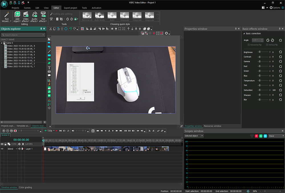 VSDC Video Editor라는 프로그램인데요. 언어 설정에서 한국어는 없네요.