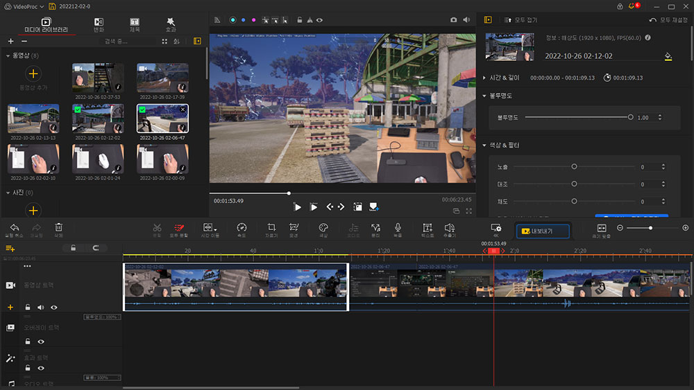 처음에 파일 추가되는 부분이 느린 부분 빼고는 나머지는 괜찮다고 생각할 수 있는데 효과나 기능 부분이 뭔가 많이 부족한 느낌이 있긴 합니다. 단순히 컷편집만 할거라면 괜찮을 수 있겠지만요.