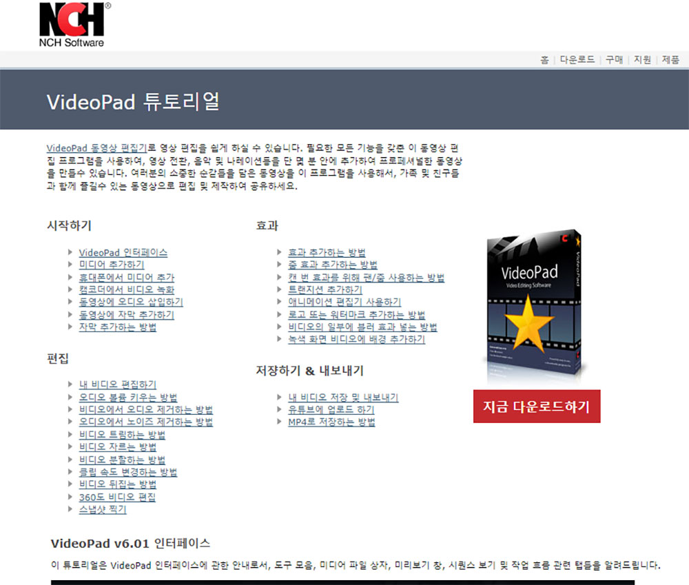 https://www.nchsoftware.com/videopad/ko/tutorial.html