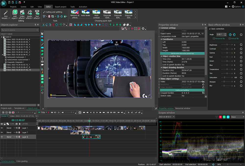 편집시 효과나 전환효과 등 다양한 옵션들을 지원하지 않는 느낌입니다. 컬러 스펙트럼이나 이런 부분들은 꽤 멋지게 나오는 부분이 있는데요. 다만 쉽고 간단하게 편집시에 굳이 이런게 자세하게 필요하지 않을 수 도 있는데요. 기능들을 많이 생략해둔 느낌이 들었습니다. 오픈소스라서 뭔가 기능이 엄청 많이 있을것이라고 생각했는데 생각보다는 없어서 좀 실망을 했던 프로그램 입니다.
