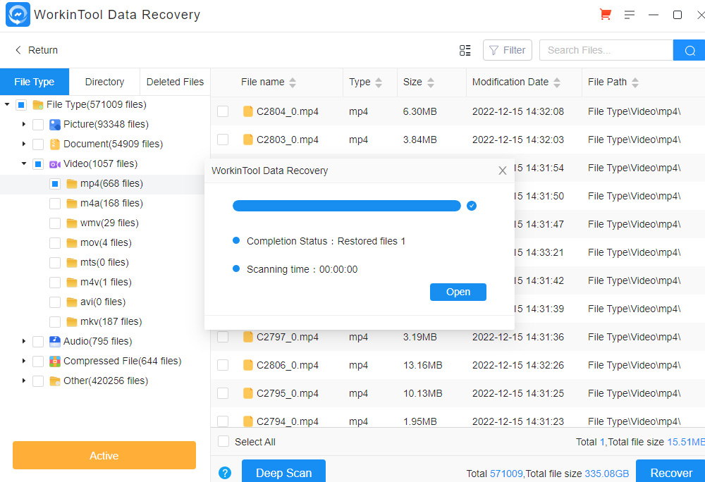 복구 후 Open 버튼을 누르면 복구한 파일들을 볼 수 있습니다.