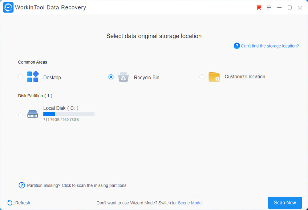 파일 복구 프로그램 간단한 휴지통 복구 WorkinTool Data Recovery Software