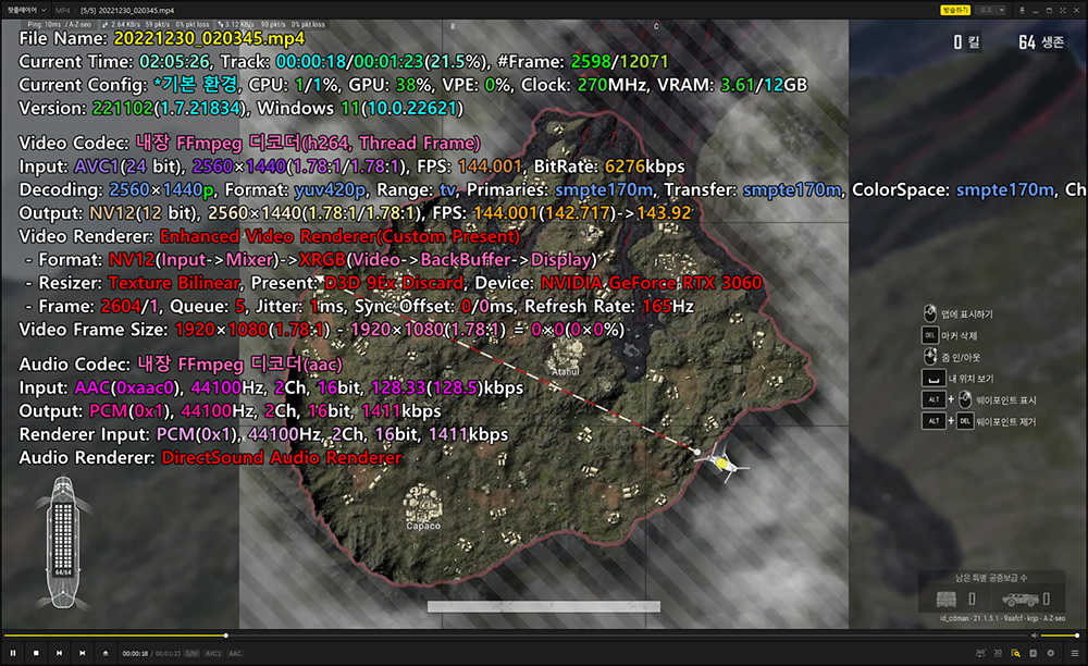 프레임을 높여서 144로 게임 화면 녹화를 해 봤는데요. 실제로 144프레임으로 녹화가 되긴 하더군요. 물론 실제 재생시에는 영상 재생 프로그램이 이것을 정상적으로 재생을 못해서 약간 끊겨보이긴 합니다. 재미있는건 보통 프레임 우선해서 녹화시 화질이 떨어지는게 보통인데, 화질은 꽤 좋았습니다. 게임 화면을 고화질로 녹화를 해야 한다면 써볼만한 것 같습니다.