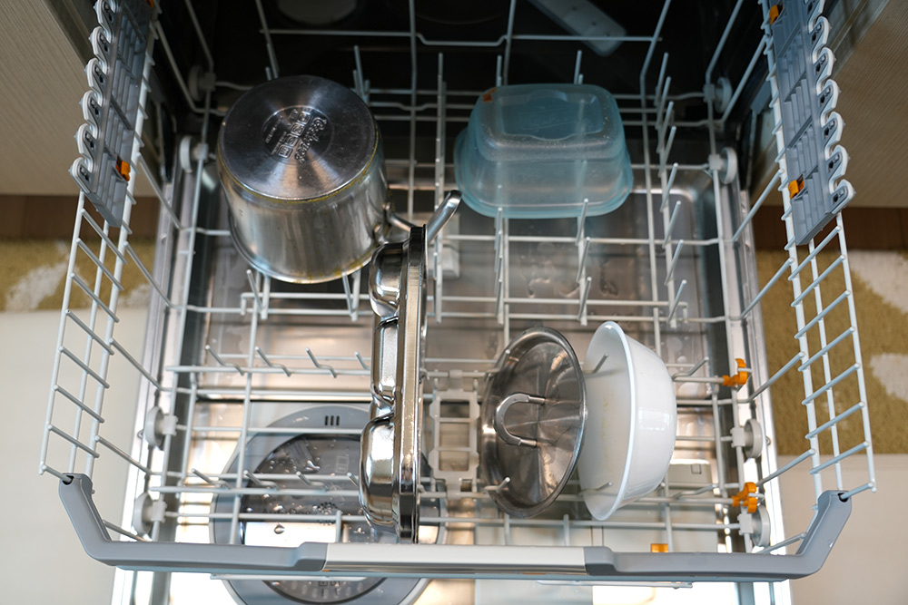 식기세척기가 열심히 돌아갑니다. 그릇이 아무리 많이 나와도 그냥 넣고 닫으면 됩니다.