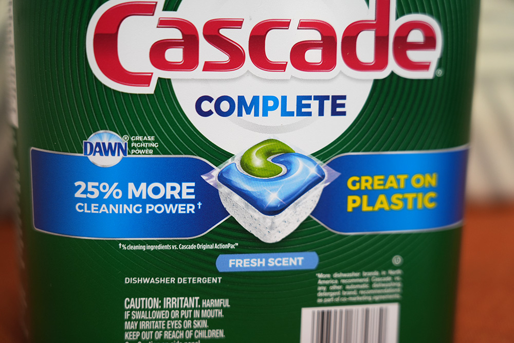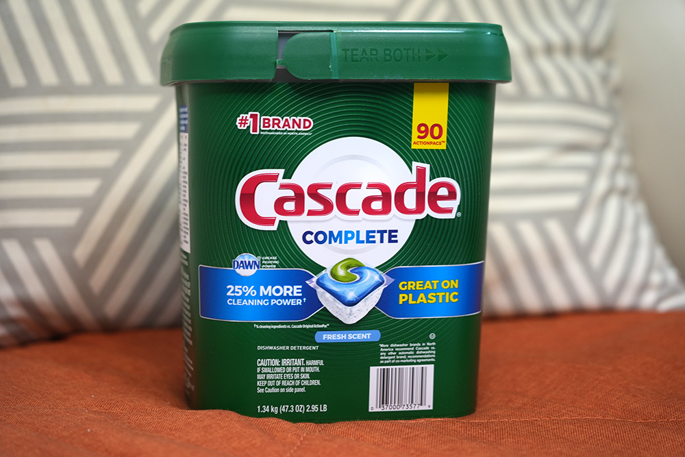 캐스케이드 플래티넘 플러스가 가장 세척력이 좋다고는 하지만 이미 세척력은 너무 강하므로 컴플리트도 써보기로 합니다. 25% 더 세척력이 강하다고 하는데요. 그리고 플라스틱에도 잘 됩니다.