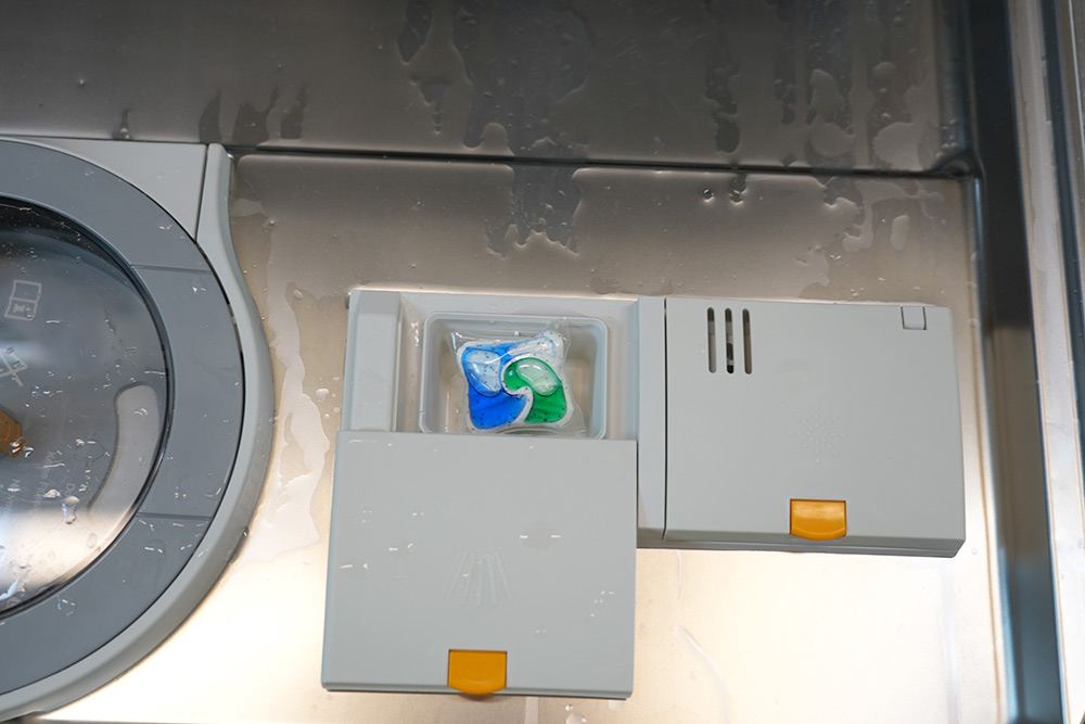 캐스케이드 컴플리트 세제를 투입합니다. 세제 투입함에 하나 넣고 닫으면 됩니다.