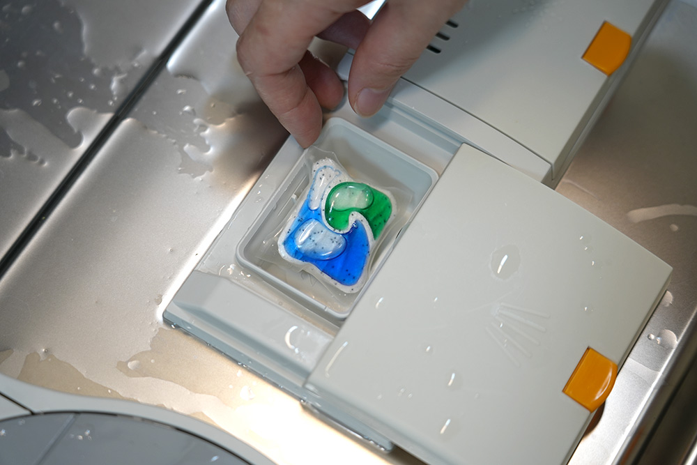 캐스케이드 컴플리트 세제를 투입합니다. 세제 투입함에 하나 넣고 닫으면 됩니다.