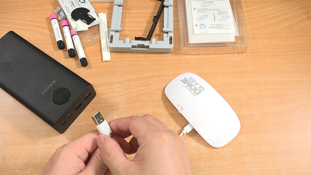 UV 경화기를 먼저 USB 충전기나 보조배터리에 연결을 해 둡니다.