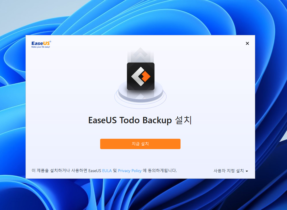 데이터 백업 프로그램 이지어스 EaseUS Todo Backup 사이트에서 무료버전을 먼저 설치를 해 봤습니다. 파일을 다운로드 후 설치 하면 지금 설치 버튼이 나옵니다.