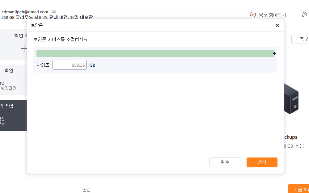 클라우드 저장소를 지정해서 백업을 해 봤는데요. 클라우드 저장소는 C드라이브 외에 별도의 드라이브도 없고 공간도 없을 때 활용할 수 있습니다.