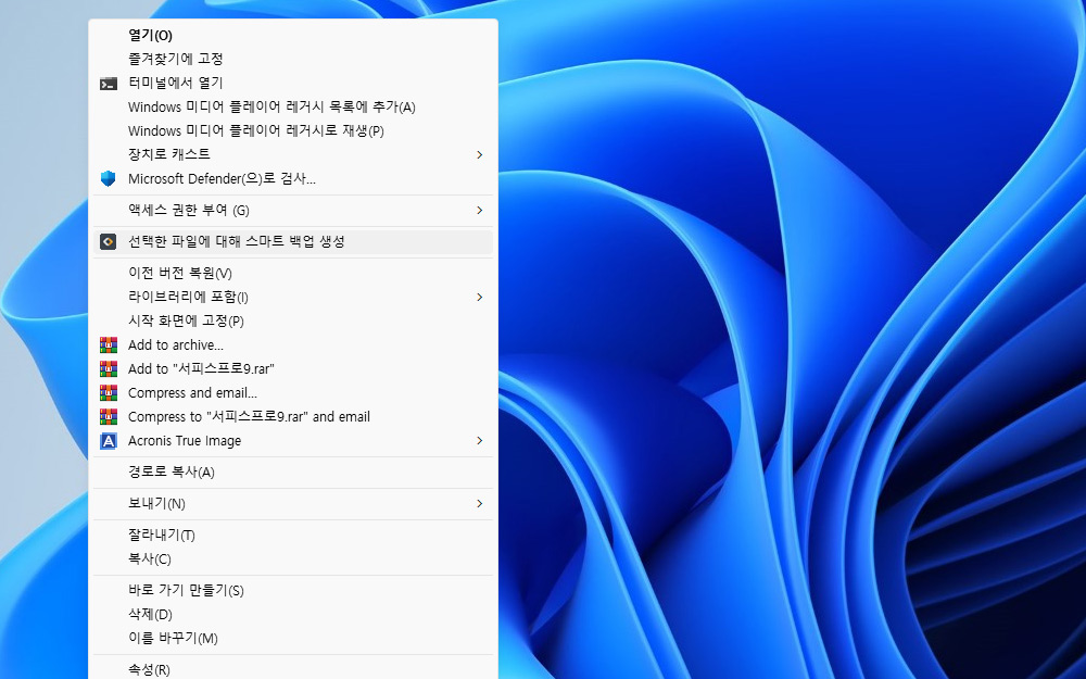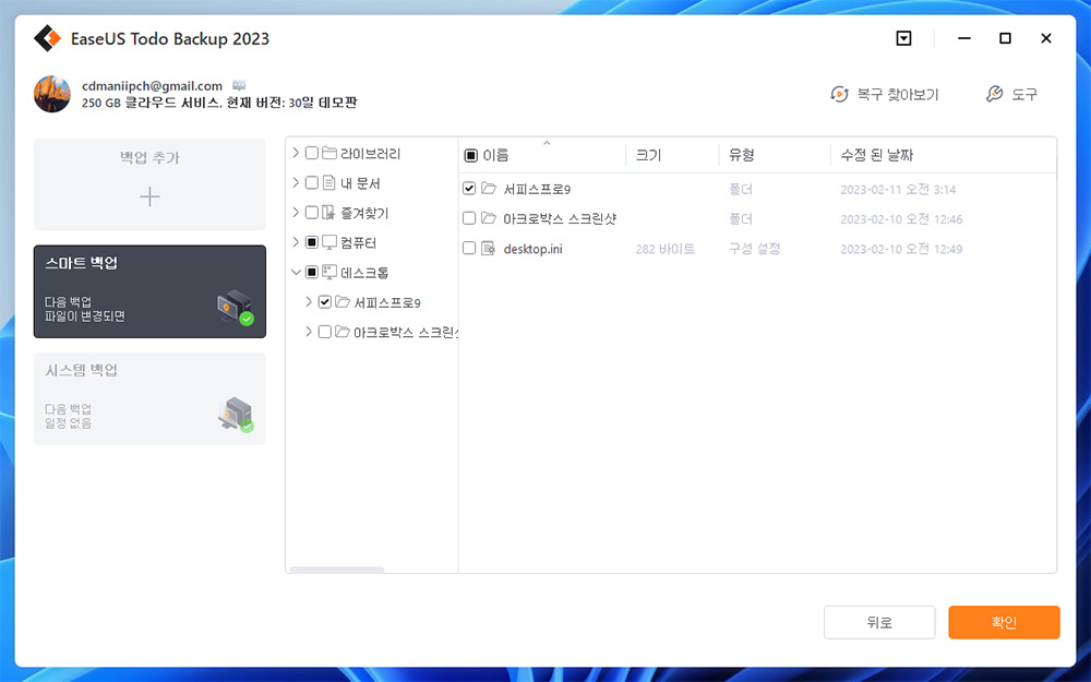 선택한 파일에 대해 스마트 백업 생성을 선택을 합니다.