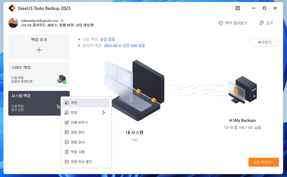 EaseUS todo backup home 다운로드 : https://bit.ly/3HX5rvU