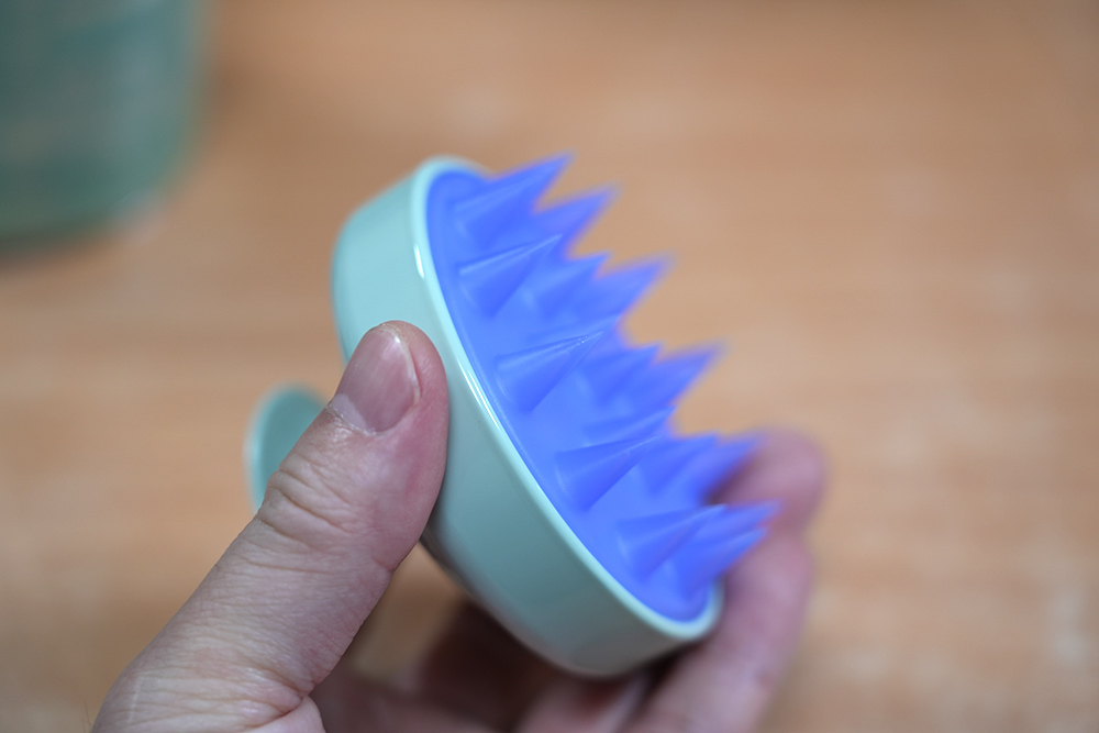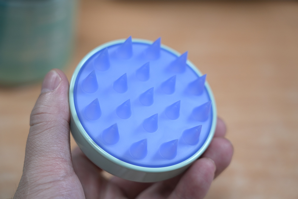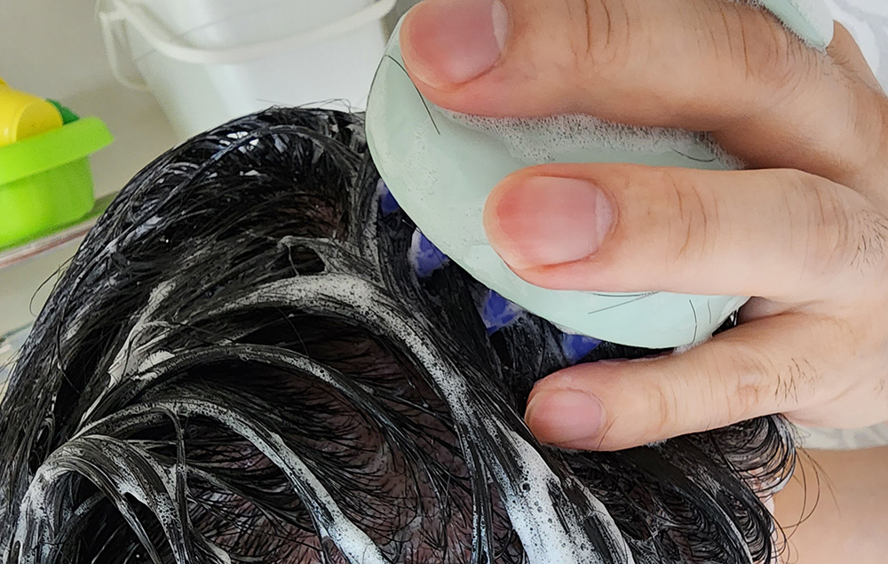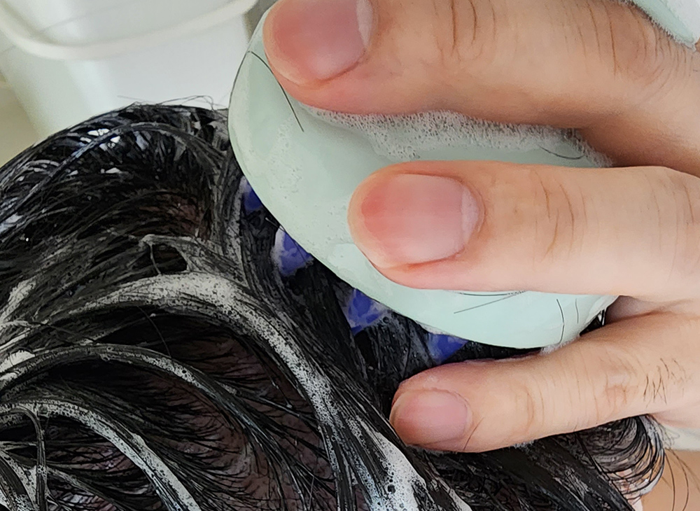 손가락 끝으로 해도 되겠지만, 전용 도구를 이용하면 두피에 자극을 덜 주면서 부드럽게 세척이 가능합니다.