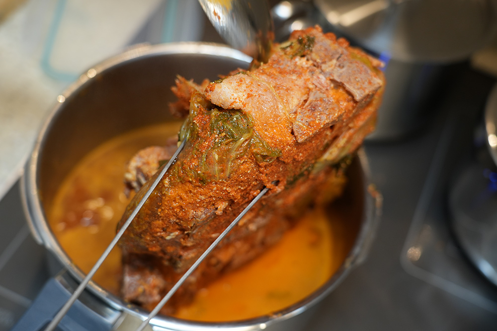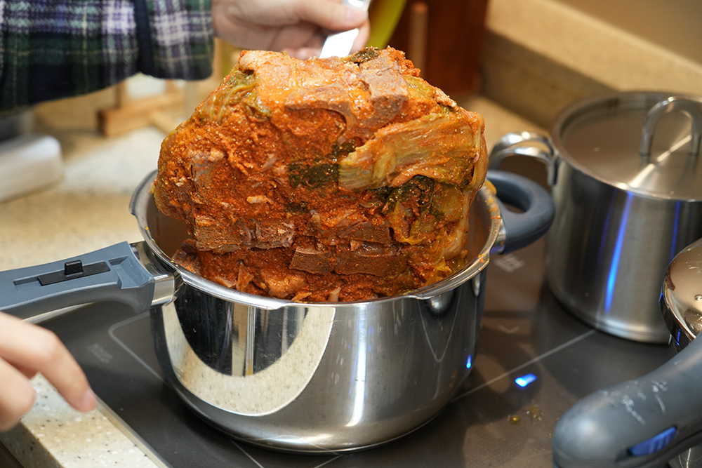 제 경우에는 시간이 부족해서 그냥 바로 뜨거운 물에 넣어서 넣어서 해동시켰는데요. 근데 냉동되어 있는게 바로 녹지는 않아서 꽤 시간이 걸리긴 하네요. 외갓집 감자탕은 마음에 들었던 부분은 국내산 돼지뼈를 사용하고 국내산 우거지를 사용하는 부분이었는데요. 다른 제품들 중 가격이 저렴한 제품들 중에 보면 국내산 재료를 전혀 안쓴 제품들도 있긴 합니다. 그런 제품보다는 차별화되는 점 같아요.