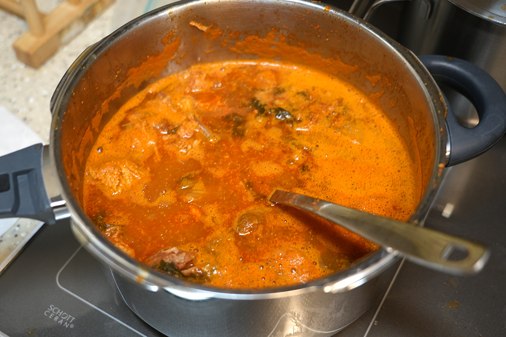 끓이고 보니 국물은 엄청 많았습니다. 꽤 걸죽하고 진합니다. 야채도 어느정도는 들어가 있구요. 감자뼈도 양이 엄청나게 많진 않으나 꽤 넉넉하게 들어가 있었습니다.