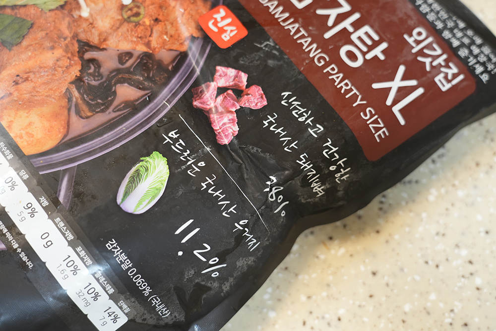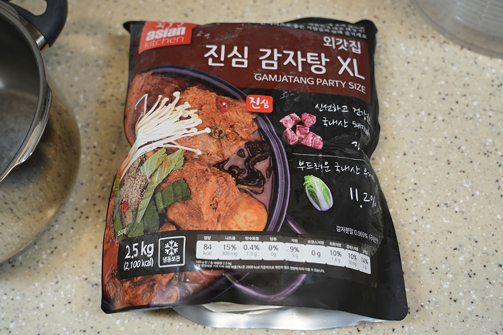 제 경우에는 시간이 부족해서 그냥 바로 뜨거운 물에 넣어서 넣어서 해동시켰는데요. 근데 냉동되어 있는게 바로 녹지는 않아서 꽤 시간이 걸리긴 하네요. 외갓집 감자탕은 마음에 들었던 부분은 국내산 돼지뼈를 사용하고 국내산 우거지를 사용하는 부분이었는데요. 다른 제품들 중 가격이 저렴한 제품들 중에 보면 국내산 재료를 전혀 안쓴 제품들도 있긴 합니다. 그런 제품보다는 차별화되는 점 같아요.