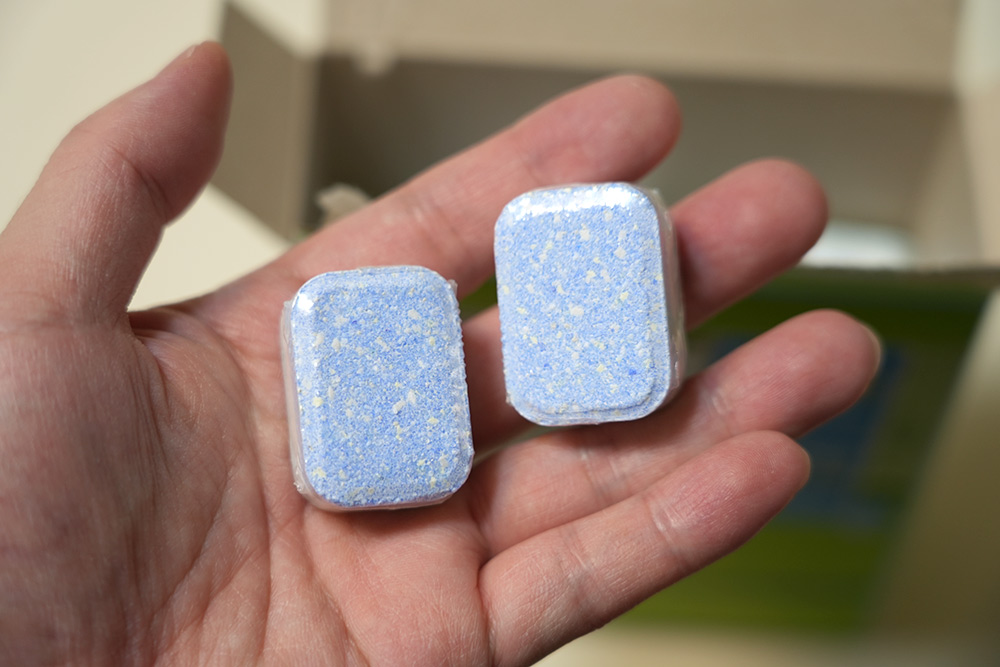 이 제품은 베이킹소다 세제에 린스까지 올인원으로 있어서 이것 하나만 넣으면 되죠. 그래서 별도로 린스를 식기세척기에 넣거나 하지 않아도 됩니다.