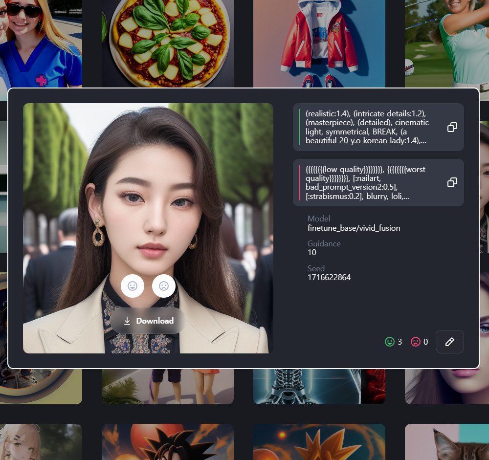 프롬프트에 원하는 내용을 넣고 네거티브 프롬프트에는 빼고 싶은 내용을 넣어서 계속 더 나은 이미지를 만들어 나갈 수 있는데요.