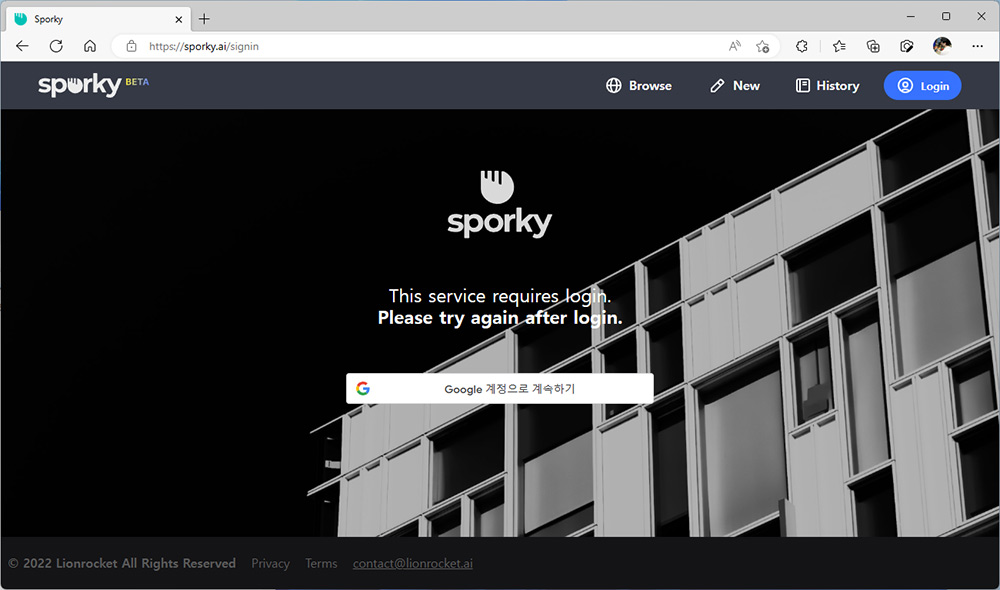 로그인을 먼저 해야하는데요. 간단하게 구글계정으로 바로 로그인이 가능합니다. 회원가입이 아니라 이미 사용하는 구글기반으로 로그인을 하니 절차가 너무 간단했습니다. 정말 버튼 2번 클릭만으로 바로 사용이 가능했습니다.
