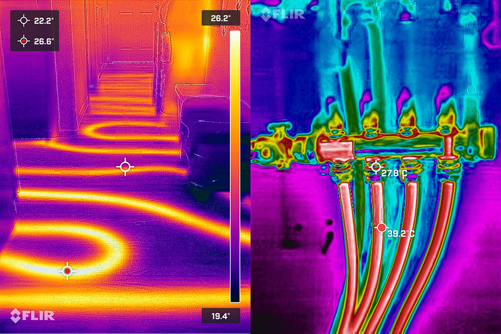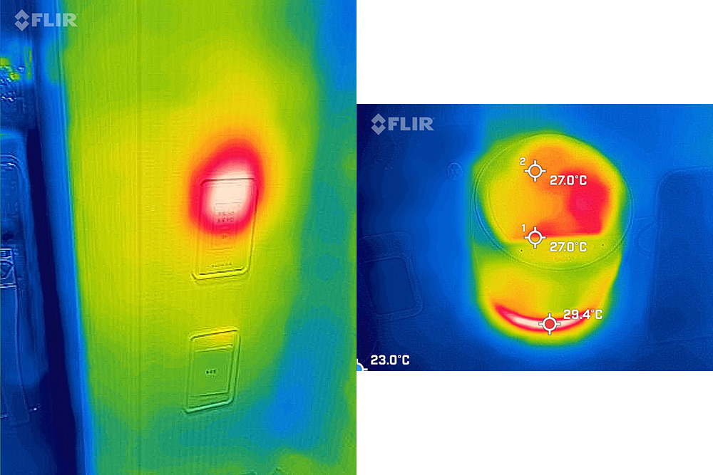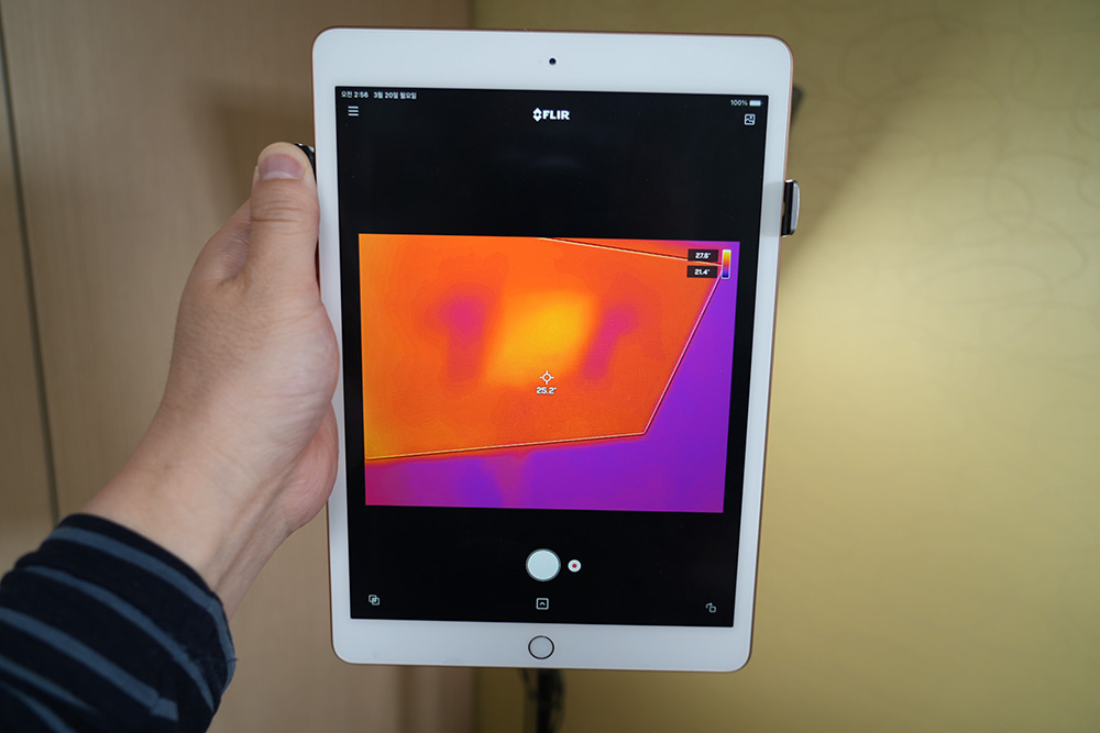 벽이나 물건에 발열을 확인 하는 부분 입니다. 열이 어느쪽에서 나는지 전기 설비는 문제가 없는 지 등을 추적 할 수 있습니다.