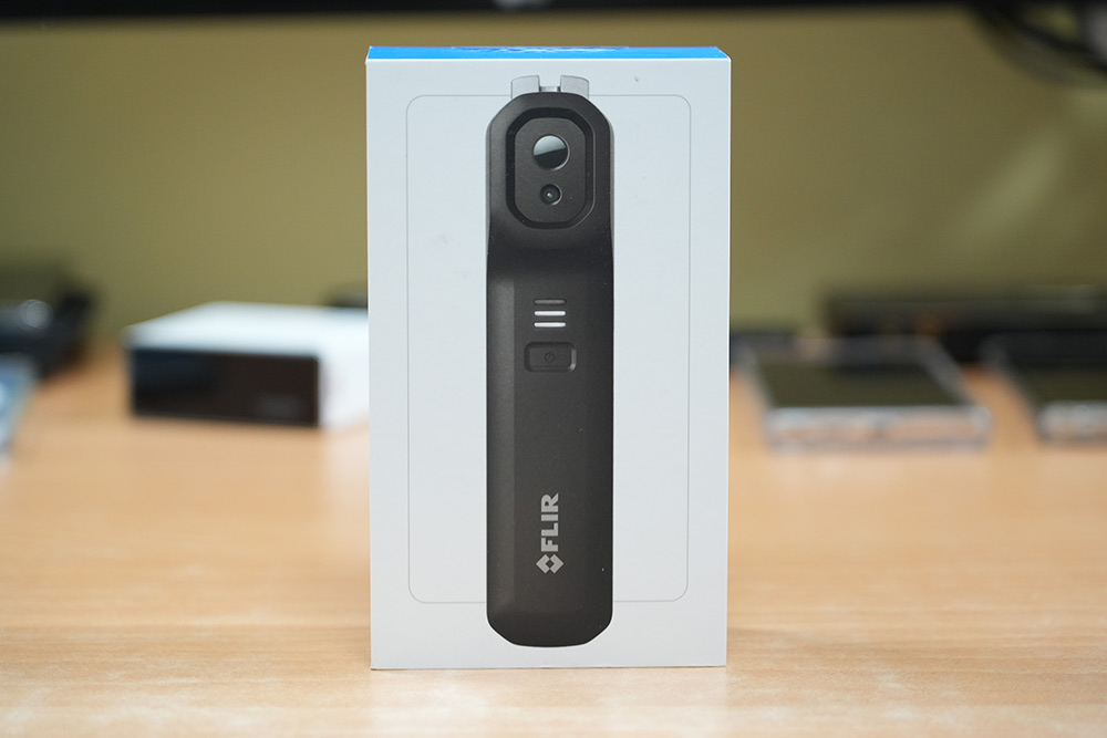 먼저 제품 박스 입니다. 이전의 FLIR ONE PRO는 아주 크기가 작았는데요. 이번에 FLIR ONE Edge Pro는 그것보다는 크기가 커졌습니다. 다만 화면이 없는 형태는 그전과 같은데요. 스마트폰이나 태블릿에 연결해서 사용하는 형태 입니다.
