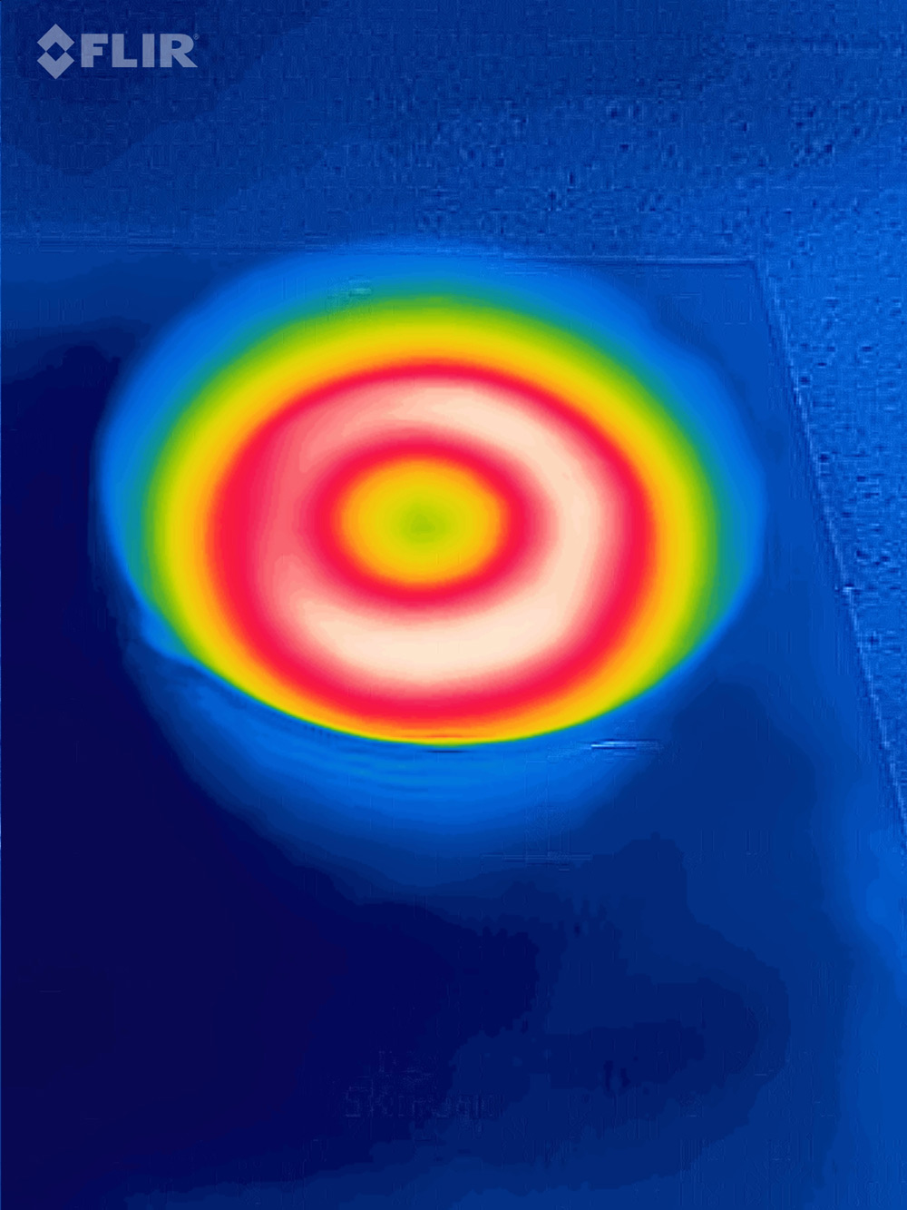 인덕션에 열을 가한 뒤 냄비를 치우고 남아있는 열을 측정해 봤는데요. 열 이미지가 깨끗하게 잘 나옵니다. 크기는 작은 편 이지만 품질이 꽤 괜찮네요.