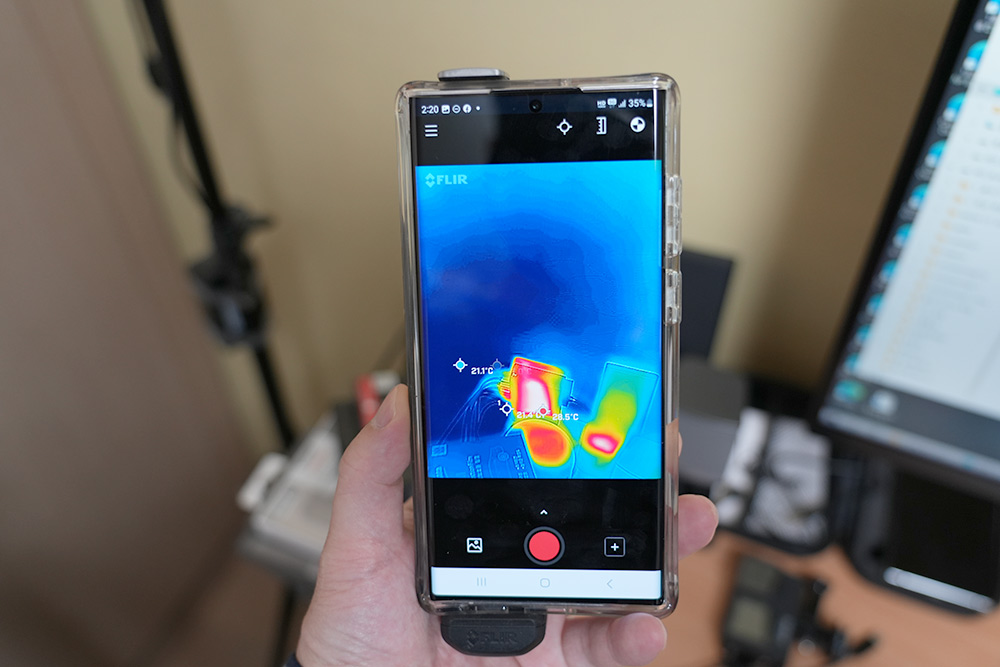 다양한 폰과 제한없이 연결되고 연결성도 좋아져서 꽤 괜찮아진 제품이었는데요. 물론 따로 떼어내서 단독으로 좁은곳에 들어가서 촬영하는것도 가능합니다. 이전 열화상카메라에서는 볼 수 없는 위치나 좁은 공간도 넣어서 촬영이 가능하므로 실제 업무에 활용할 때 꽤 편리하게 활용 될 것 같습니다.